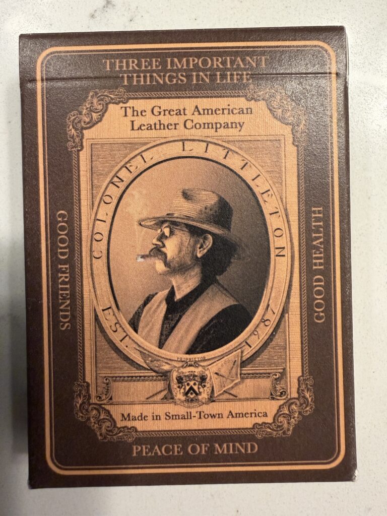 This means social skills are returning. People are putting away their phones for a while (well, maybe), visiting and having actual conversation. I’m in favor of that, so I wanted to get in the game with my new deck of Colonel Littleton Playing Cards.”