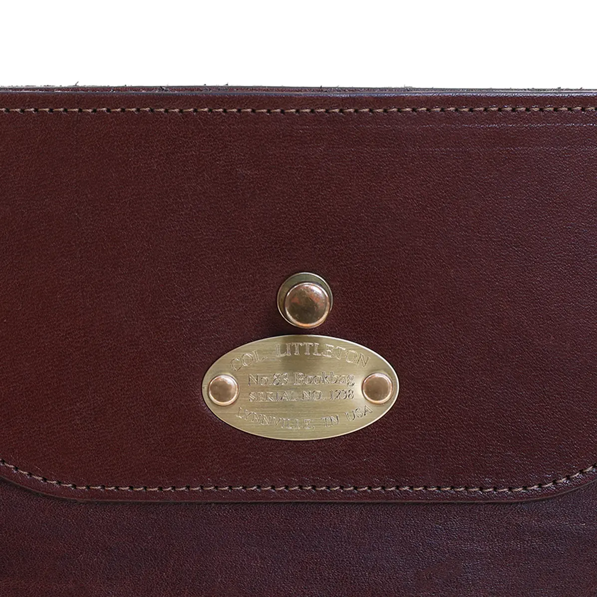 The No. 83 Leather Messenger Book Bag is handmade in the Col. Littleton Workshop in Lynnville TN, USA with full-grain, dry-milled steerhide and polished leather trim. This special leather has been vegetable-tanned, then tumbled in wooden barrels to achieve a soft, lived-in look.