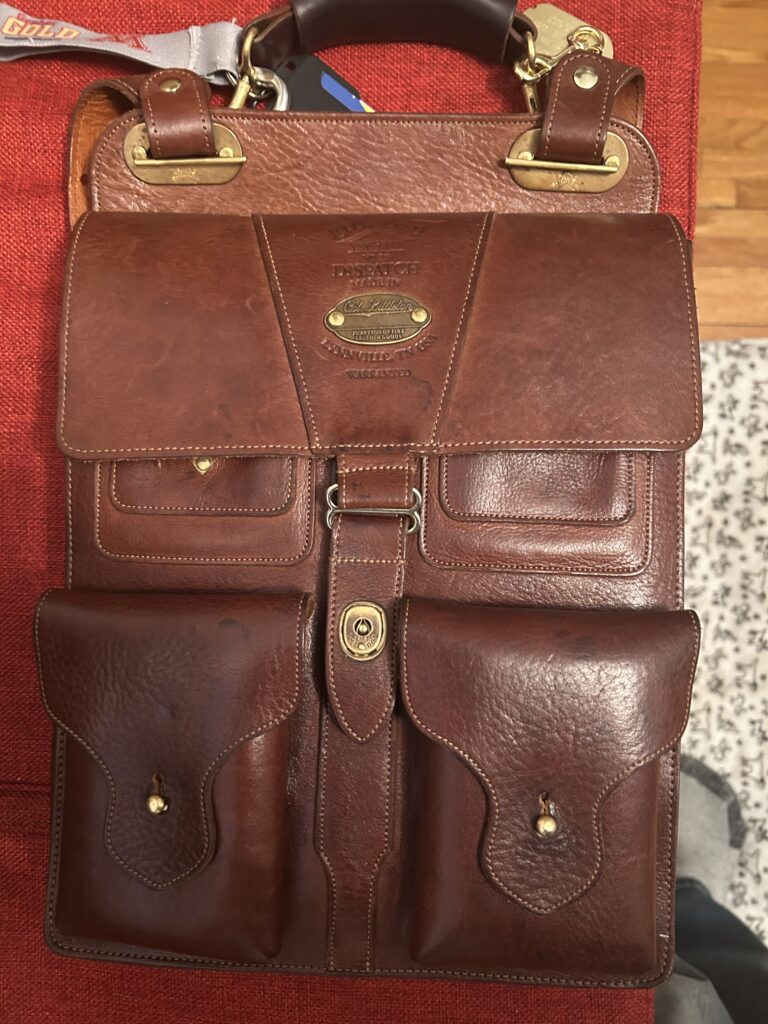 Colonel loaded the Dispatch Bag with his iPad, No. 18 Portfolio, extra legal pads, folders and journals.  It became a favorite companion for meetings, travel, and daily work. It has pockets galore. A generous rear pocket holds extra papers and documents while two large pockets on the front with turn-key closures are ideal for keys, chargers, earbuds, etc. Four pockets under the front flap handle business cards, receipts, and smaller items nicely.