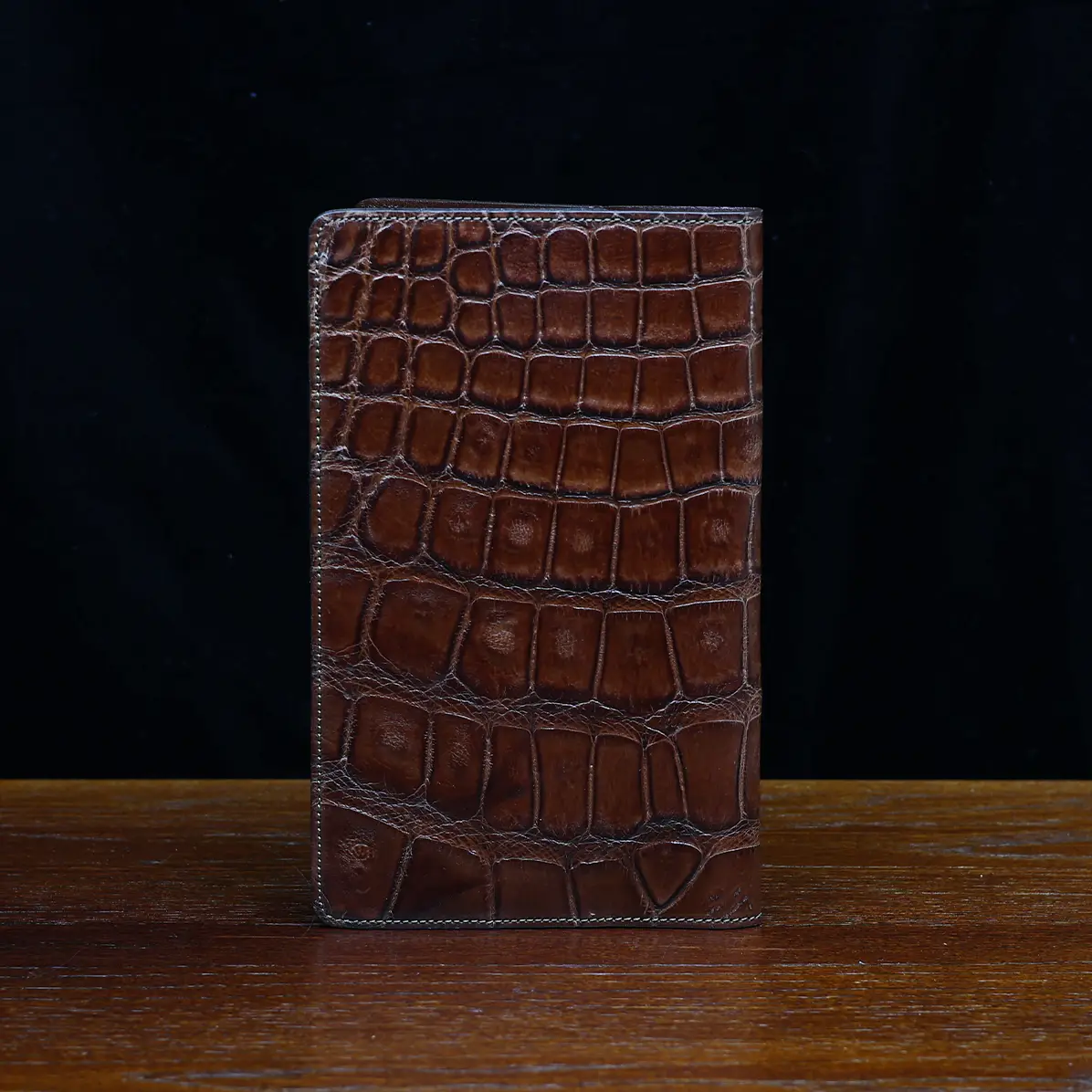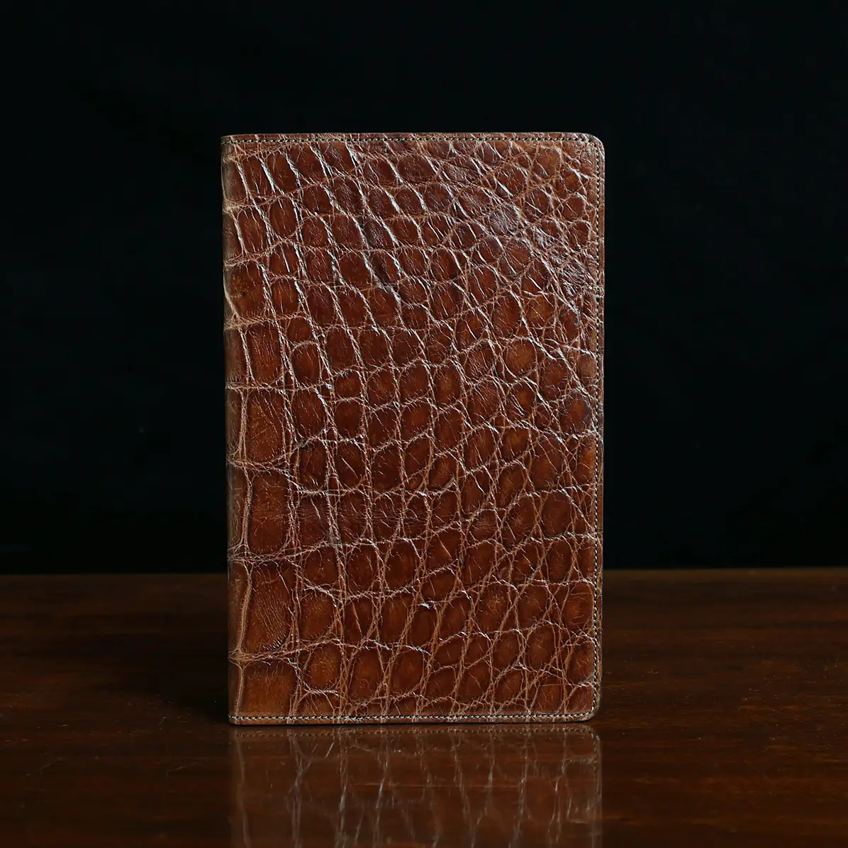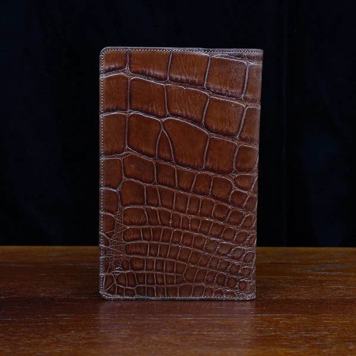 Leather journal cover, made in the Colonel Littleton Private Stock Workshop of luxurious American Alligator and fully lined in leather, fits our journal like a book cover. Also works with other journals of similar size. Use it today and preserve it for the ages. May be personalized with three initials and year engraved on archive box. Product packaging also includes a protective cotton canvas dust bag.