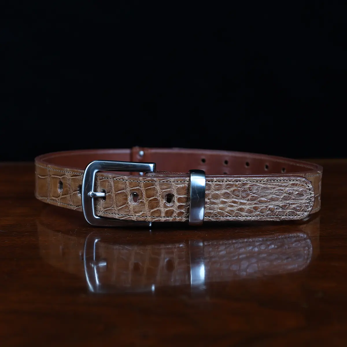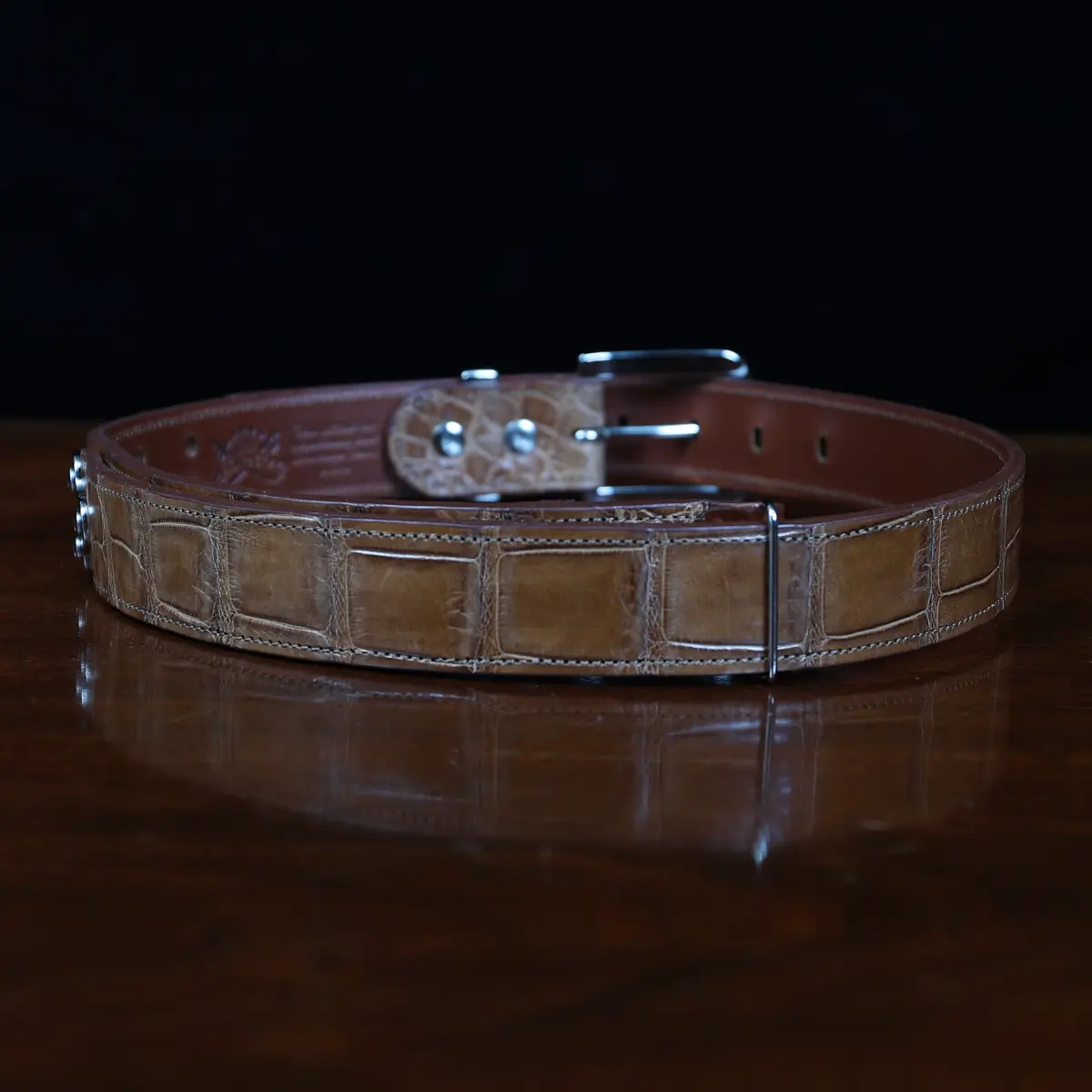 Handmade in the Col. Littleton Workshop of luxurious American Alligator. 1 3/8″ wide. Nickel Finish Hardware. Product packaging includes a protective cotton canvas dust bag and gift box.