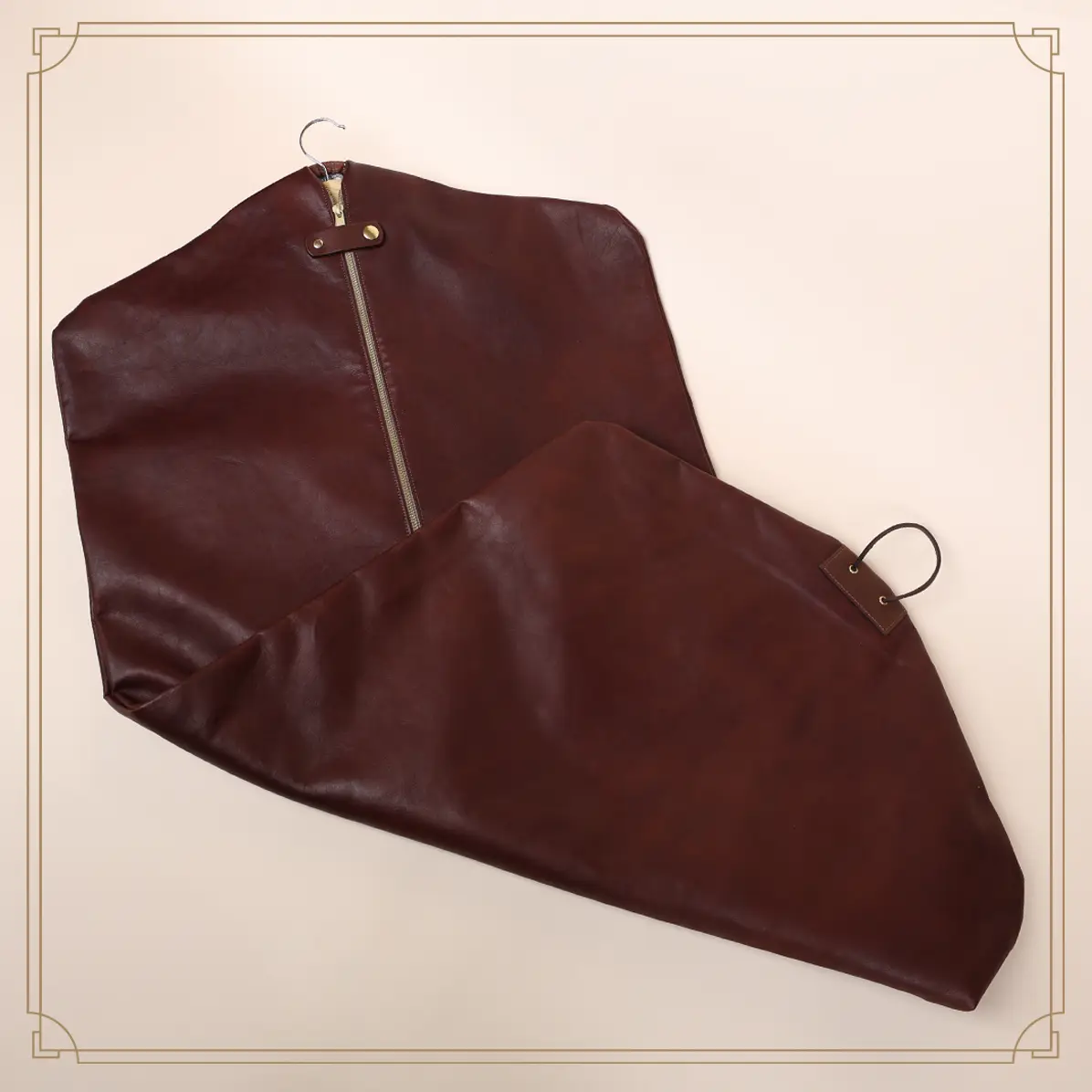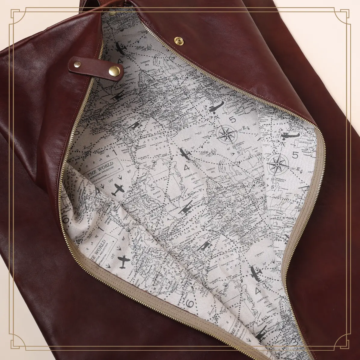 The lined Leather Garment Bag is handcrafted from lightweight, full-grain Vintage Brown American Steerhide and trimmed in American Steerhide. It is fully lined in a garment-protective natural “Air Traffic” printed 100% cotton duck fabric and finished with Colonel’s hallmark details: an antiqued brass plate that can be personalized with your initials, a wooden hanger, and a high-quality YKK zipper. An American Steerhide leather hand carry strap and leather loop to secure hangers completes the look. The Leather Garment Bag holds up to three suits and folds neatly for easy transport. For business trips and weekends away, this is the bag that says you’ve arrived long before you step off the plane.