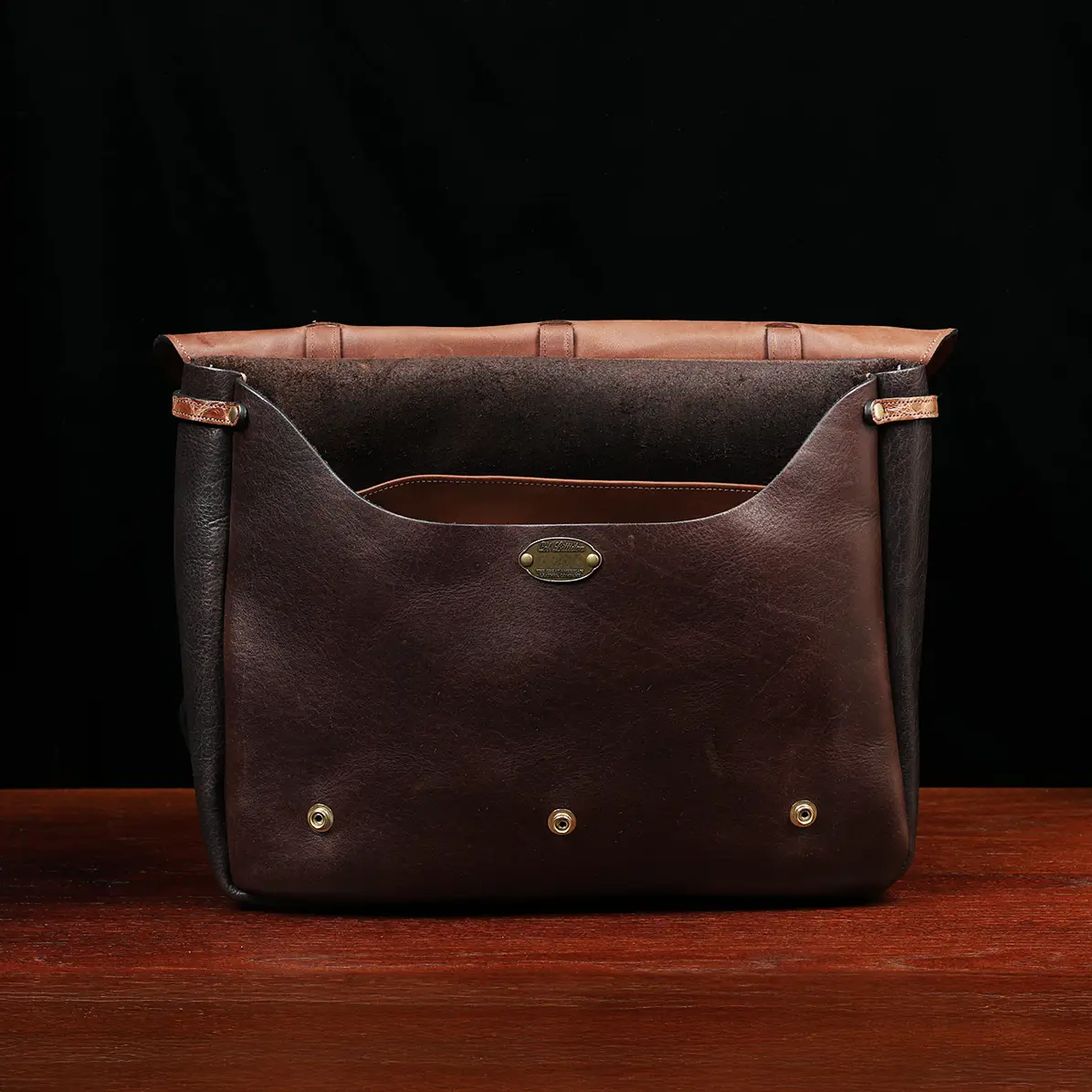 - Body/Flap Lining: Full-grain American Buffalo Leather